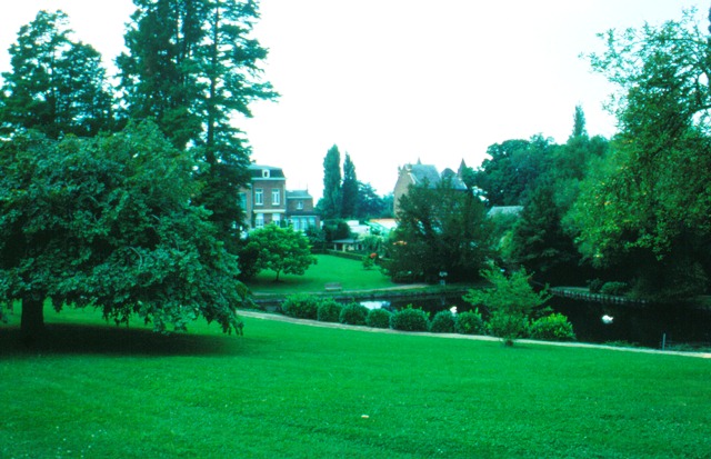 Rond 1879 gebouwde villa en speels koetshuis omgeven door landschappelijk park van oorspronkelijk 1 hectare 22 are, nadien verkleind tot 94 are, een tot vijver omgevormd gedeelte van de buitengracht van de oude stadsvest; aantrekkelijk en goed bewaard geheel met enkele zeldzame bomen.