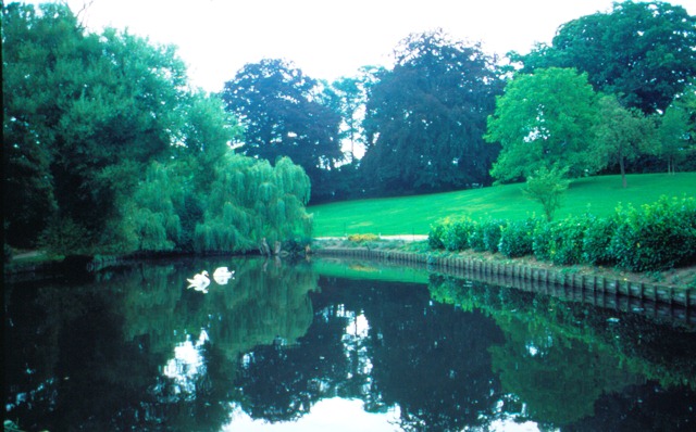 De oorspronkelijke randbeplanting van het parkgedeelte over de vijver bleef vooral langs de noordelijke zijde bewaard – onder meer bruine beuk en vederesdoorn (Acer negundo); de zuidrand werd 30 à 40 jaar geleden met bontbladige esdoorns afgezoomd (Acer pseudoplatanus 'Leopoldii'). Uit een ansichtkaart uit het begin van de 20ste eeuw blijkt dat de beplanting tussen de villa en de vijver aanvankelijk veel dichter was, een visuele trechter vormde die het perspectief naar het heuveltje als het ware omkaderde en de band tussen de onmiddellijke omgeving van de villa en het gedeelte over de vijver versterkte. Tot de oorspronkelijke beplanting behoort waarschijnlijk ook de mammoetboom (Sequoiadendron giganteum) tussen de villa en het koetshuis. Onder de recentere beplantingen werd in het gedeelte over de vijver een beuk genoteerd met bizar kronkelende gesteltakken en hangende twijgen, ongetwijfeld een Fagus sylvatica 'Tortuosa', een uit Verzy bij Reims afkomstige variëteit, in 1845 in cultuur gebracht en uitzonderlijk als treurbeuk gebruikt, hier op een 2,20 m hoge onderstam. Bijzonder zeldzaam maar vermoedelijk niet zo oud is ook de es met kleine, min of meer gekroesde blaadjes (Fraxinus excelsior 'Crispa') naast voormelde mammoetboom.
