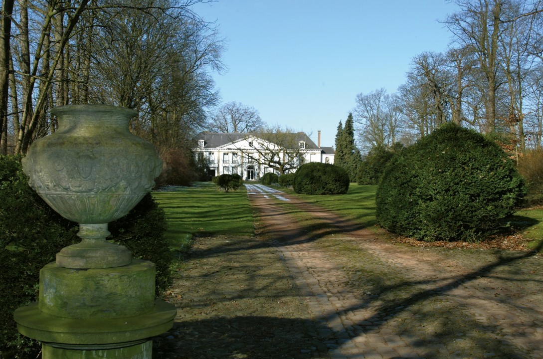 Landschappelijke tuin, 2 hectare (oorspronkelijk 38 are groter) aangelegd tussen 1800 en 1830 bij een 18de-eeuws buitenhuis; aanleg van een regelmatige 'Franse' tuin tijdens het interbellum: heroriëntering van het landhuis, nieuw toegangshek en oprijlaan, nieuwe zichtas met 'follies', tuinvazen en exedra, samen met pergola en minigolf.