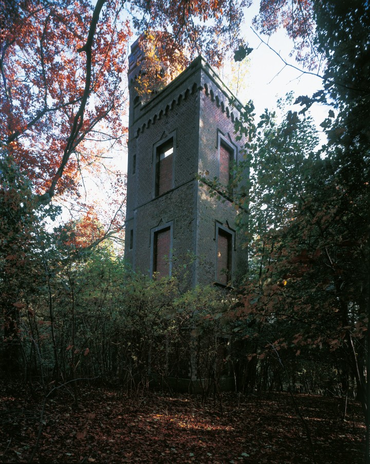 Een voor de streek unieke folly: de belvedèretoren op het hoogste punt van het Korbeeks Kasteeldomein in 1856 is gebouwd naar aanleiding van de 25ste verjaardag van de troonsbestijging door Leopold I. (Pauwels, Oswald, 01-01-1999, ©Vlaamse Gemeenschap)