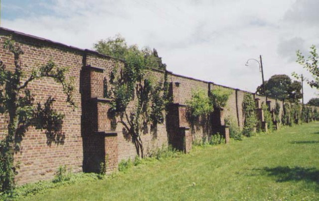 De in 1860 gebouwde muur langs de Wolvertemsesteenweg en ingericht als fruitmuur bij de Norbertijnenabdij (Deneef, Roger, 01-01-2000, ©Vlaamse Gemeenschap)