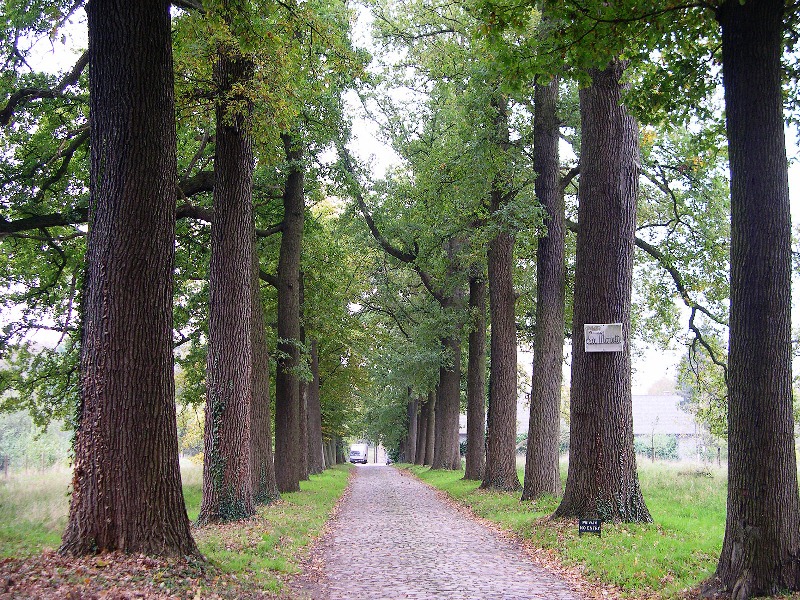 Met zomereiken afgezoomde oprijlaan van domein Morette (Deneef, Roger, 24-10-2007, ©Vlaamse Gemeenschap)