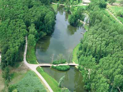 bordé d’un étang.