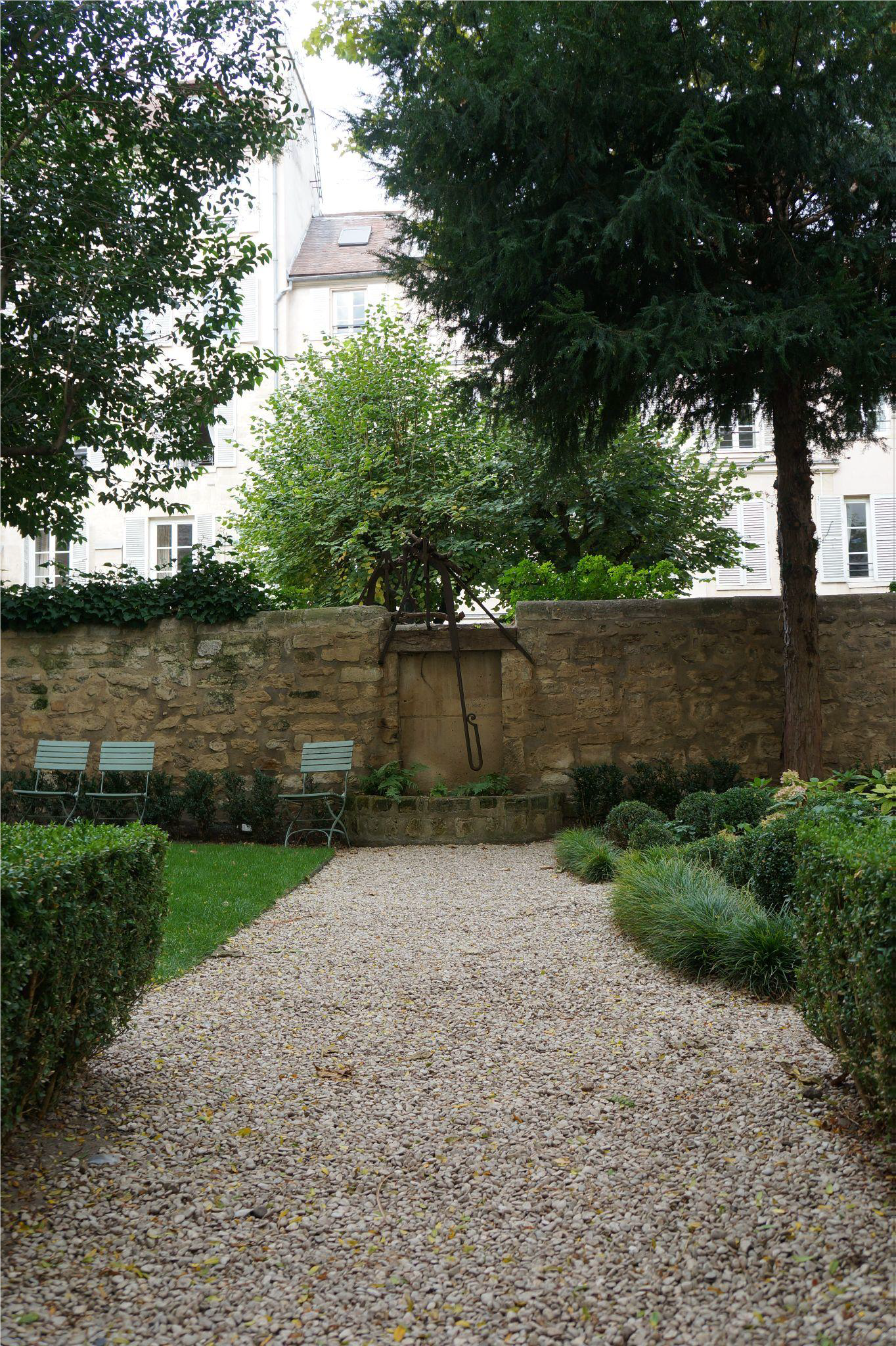 Un puits, orné d’un if et d’un troène, se trouve le long du mur ouest. Il fait face à un banc en pierre placé à l’extrémité d’un chemin. Comme autrefois Delacroix, des promeneurs viennent aujourd’hui encore s’extraire de l’agitation de Saint-Germain-des-Prés et s’installent sur le banc en bois qui entoure le tronc du févier, le banc en pierre ou des chaises disposées de manière diffuse.