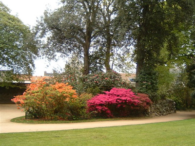 Arbres : majorité d’arbres à feuillage persistant, notamment de nombreuses espèces provenant d’Amérique du Sud, d’Australie et de Chine (eucalyptus, ginkgo biloba, jubaea chilensis, ligustrum ovalifolium (15 m), quercus ilex (centenaire), fagus sylvestris)