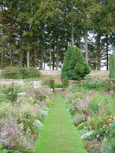 Clos de murs en brique orangée de Varengeville, ce jardin potager est attenant au château. Quatre carrés, où poussent des rangées de légumes sagement alignés, sont délimitées par des allées de gazon. Se côtoient carottes, artichauts, navets... Des mixed-borders où s’entremèlent vivaces et annuelles de couleurs et hauteurs variées forment l’allée principale. Fraisiers, groseillers, framboisiers et rhubarbes ponctuent de part en part ce décor.