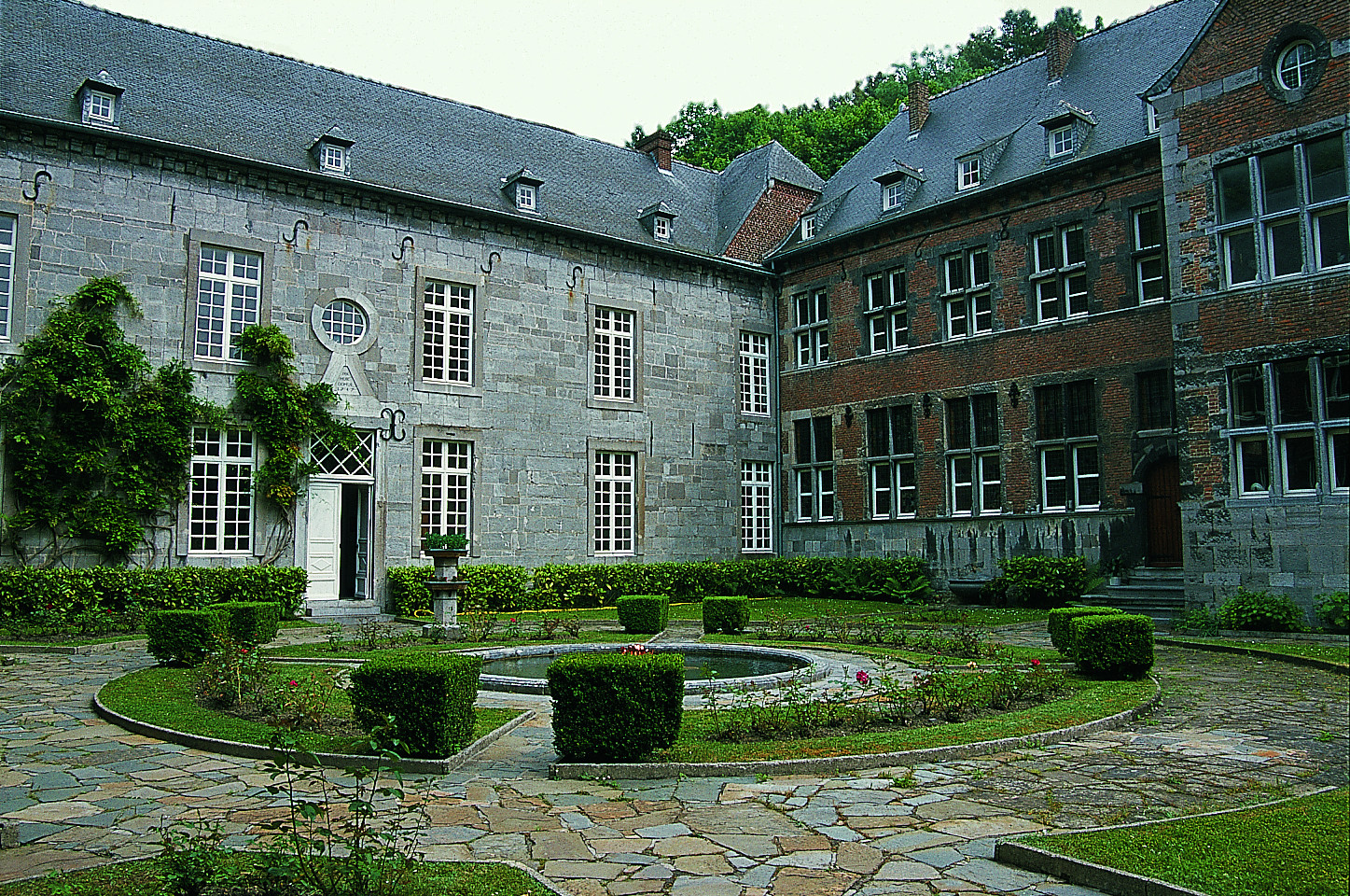 Bassin au pied de l'ancienne prélature (1747). © Inventaire des parcs et jardins historiques de Wallonie